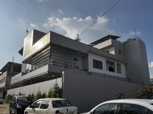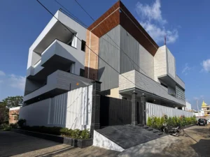 This modern architecture project showcases a striking elevation characterized by a dynamic play of level differences. The design skilfully combines varied materials, forms, and lines to emphasize depth and structure, creating a visually engaging façade that balances boldness with elegance. The interplay of these elements adds texture and complexity, making the building a standout example of contemporary design.